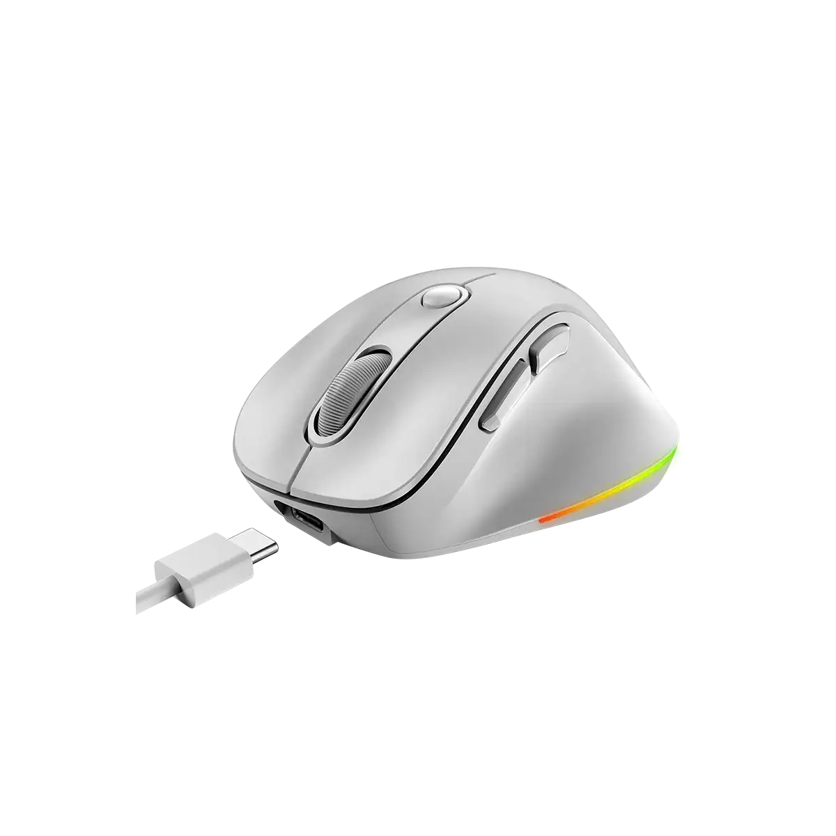 USB-C konektor omogućava jednostavno i brzo punjenje, uz praktičnost upotrebe jednog kabla za više uređaja. Ovaj miš dolazi s integrisanom punjivom baterijom koja osigurava dugotrajan rad bez potrebe za zamjenom baterija, čime doprinosi očuvanju okoliša.