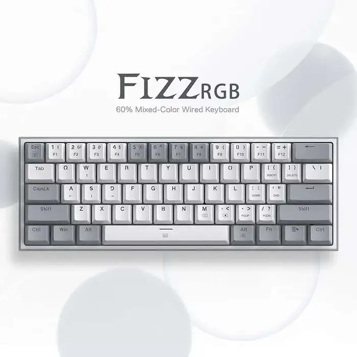 Gaming tastatura Redragon K617 Fizz RGB 60% je kompaktna sivo-bijela mehanička žična tastatura sa 61 tasterom i sa podrškom za profesionalni upravljački program. Providan dizajn, linearni crveni switch-evi i prilagodljivi RGB svjetlosni efekti čine ovu tastaturu ultimativnim izborom za FPS gamere. Ova ultrakompaktna gaming tastatura novog dizajna, sa živopisnim elementima i osvježenim rasporedom tastera u dvije boje, oslobađa dragocjeni prostor na stolu.