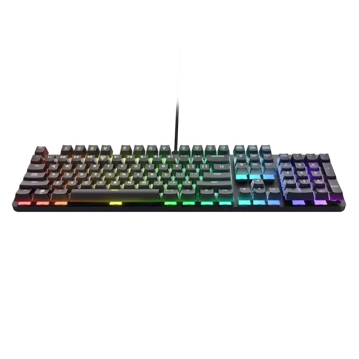 Trust GXT871 Zora mehanička gaming tastatura nudi do 50 milijuna pritisaka na tipke, što znači da možete nastaviti razvijati svoje vještine sa svakim. Dodajte malo cool svojoj tipkovnici. Zajedno s potpuno podesivim RGB osvjetljenjem sa 16,8 milijuna kombinacija boja, programabilnim putem softvera, ova vam tipkovnica omogućuje pronalaženje savršene vibracije za vaše vrhunsko personalizirano postavljanje. N-key rollover anti-ghosting funkcija bilježi neograničen broj pritisaka tipki u isto vrijeme, dok Fn višenamjenske tipke nude izravan pristup vašem media playeru, pauzi i drugim funkcijama.